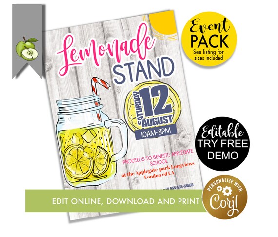 School Summer Picnic, Lemonade Mason Jar, PTO Fundraising Flyer